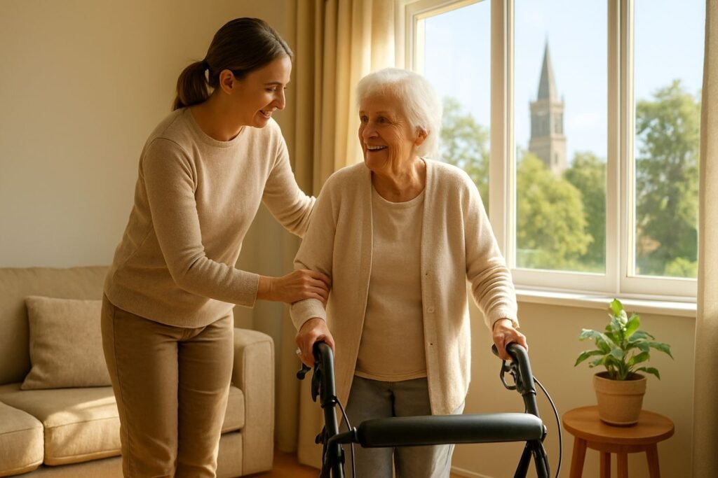 - Mobility support – moving around the house safely.