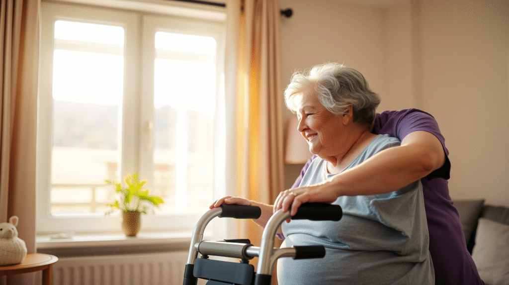 • Mobility and transfer support (e.g., chair transfers, walking aids)